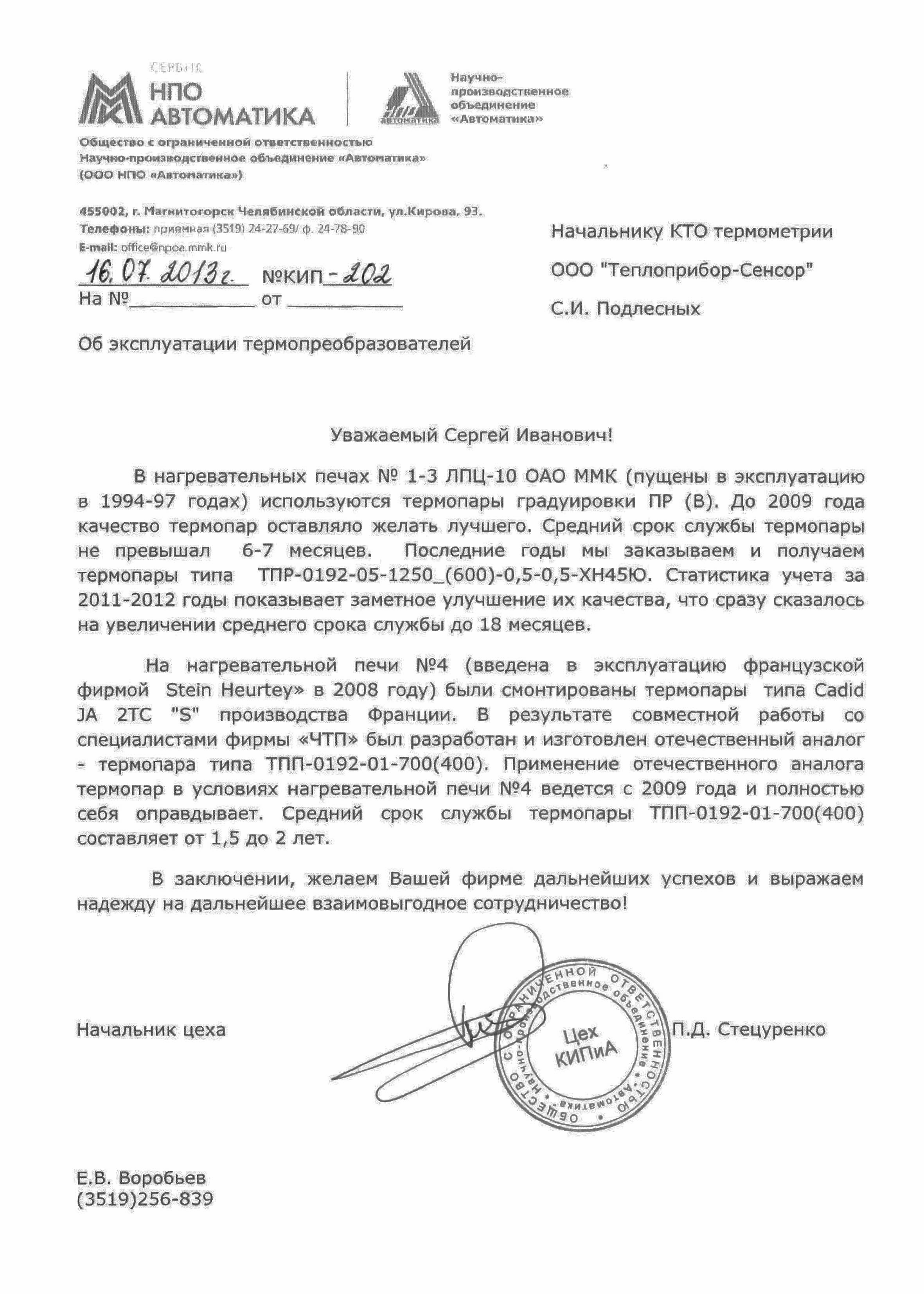 | 8 | Термопара ТХА-0104 | 2011 | ООО "ЕвразЗСМК" |