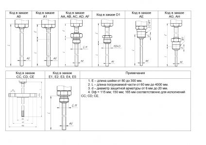 ТП01, ТП02, ТП03, ТП05, ТП06 – термопары с кабельной вставкойс НХС типа К (хромель-алюмель).