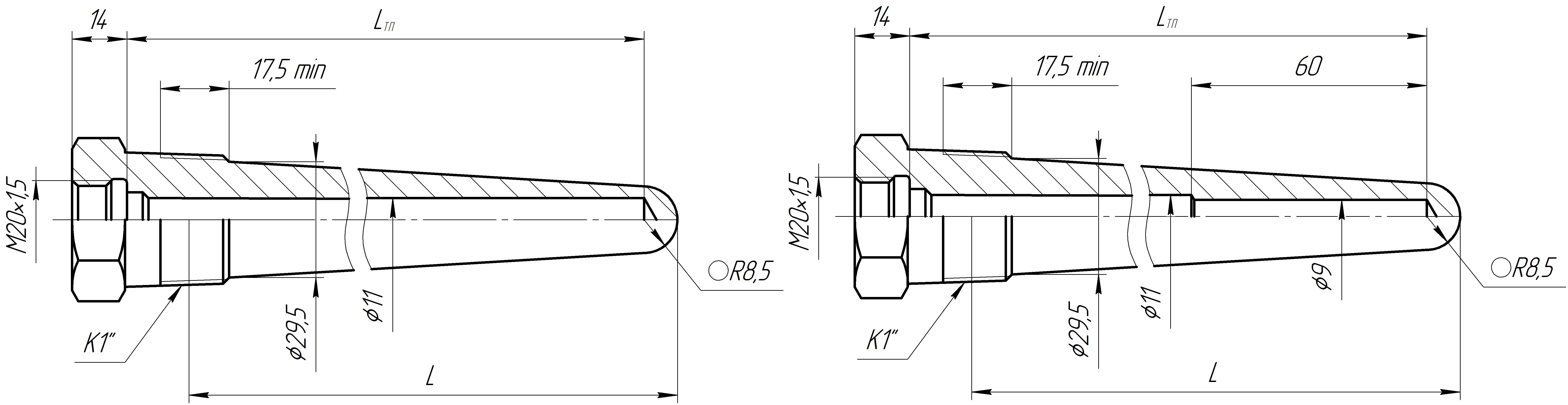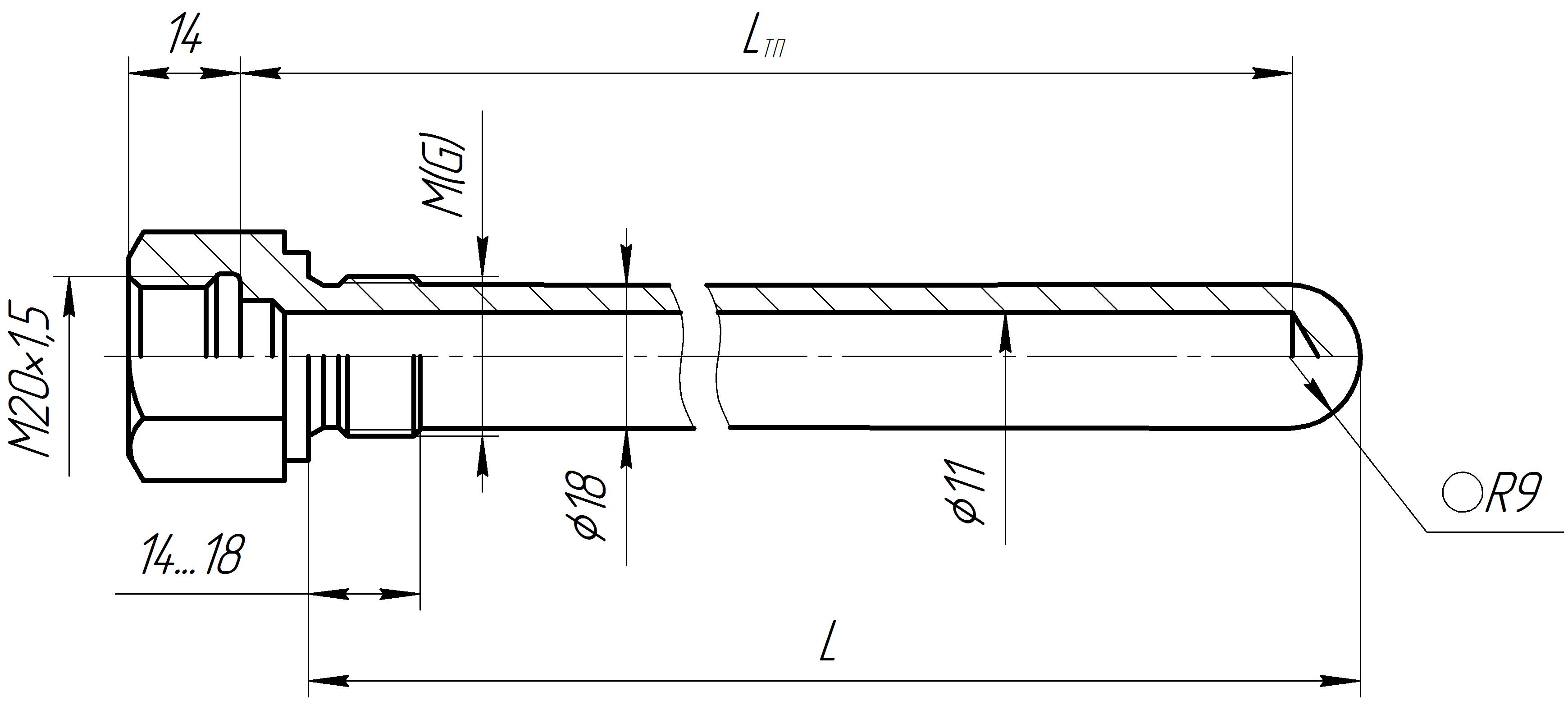 Гильзы защитные цельноточеные с резьбовой ввертной частью ГЗР-01, ГЗР-02 предназначены для защиты  датчиков температуры от воздействияизмеряемой среды.