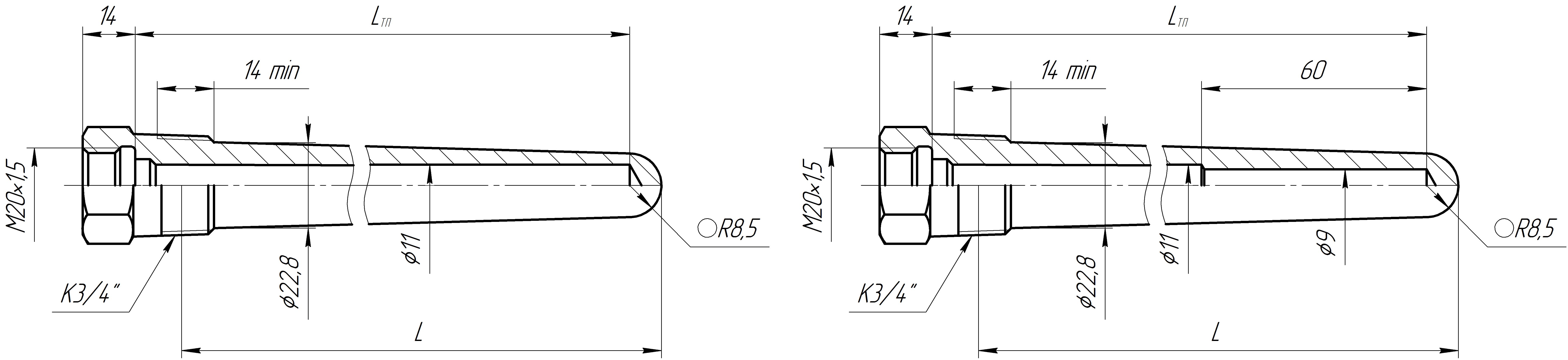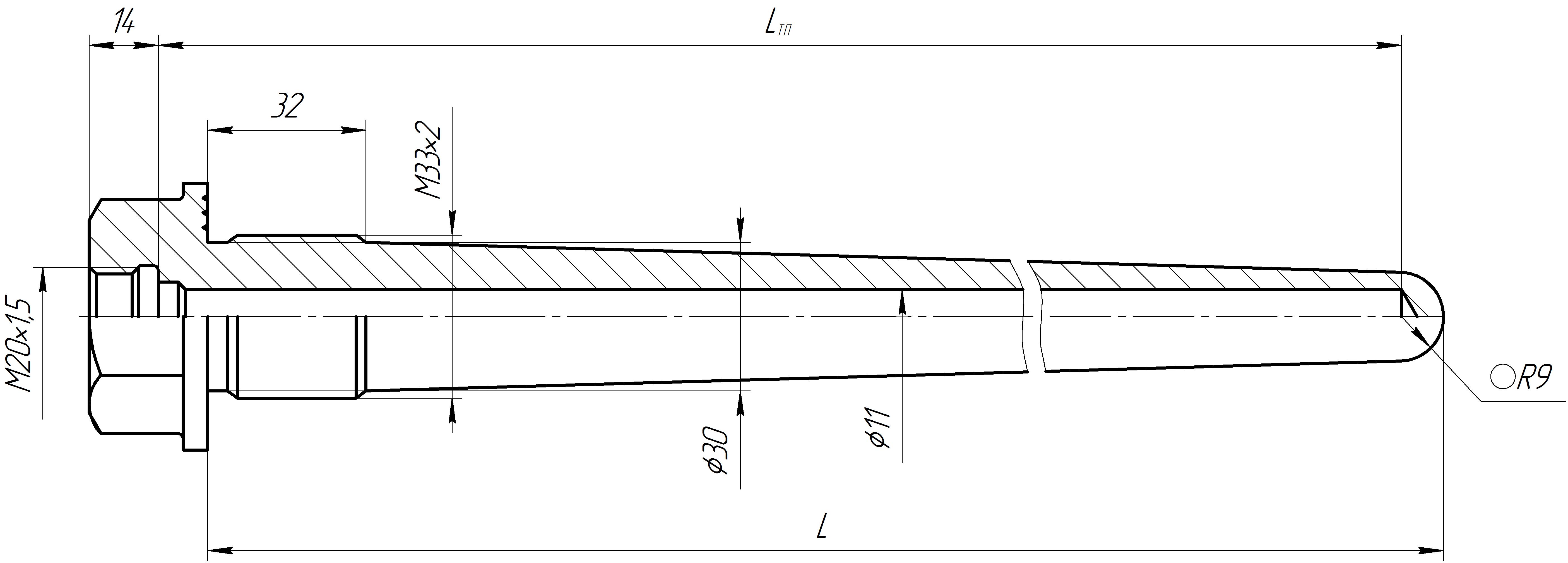 Гильзы защитные цельноточеные с резьбовой ввертной частью ГЗР-01, ГЗР-02 предназначены для защиты датчиков температуры от воздействияизмеряемой среды.