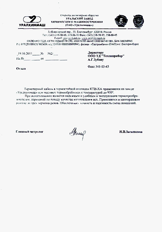 Эксплуатационный срок изделия не нормирован и определяется характеристиками термоэлектродов, условиями использования кабеля, комплектностью. Производитель не рекомендует хранить термопару с кабельным выводом более 1 года со дня изготовления.